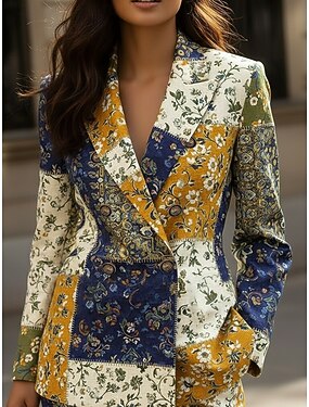 Women's Blazer Warm Comfortable Buttons Print Fashion Formal Floral Formal Casual Holiday Going out Double Breasted Regular Notch Lapel Regular Fit Long Sleeve Outerwear Yellow Spring Fall