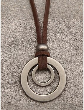 Men's Adjustable Leather Cord Necklace with Double Circle Pendant – Vintage Casual Jewelry for Everyday Wear and Outdoor Style