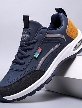 Men's White and Navy Faux Leather Fashion Sneakers – Comfortable Casual Lace-Up Shoes for Travel, Walking and Urban Streetwear