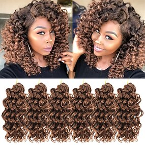 8 Inch Short Curly Crochet Hair for Black Women Beach Curl Water Wave Curly Crochet Braids Hair Deep Wave Synthetic Braiding Hair Extensions