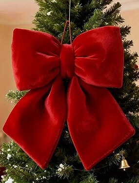 Large Red Christmas Bow – Classic Holiday Tree Decoration, Perfect for Indoor and Outdoor Christmas Trees, Wreaths, Wedding Decor, Party Accents, Gift Wrapping, Thanksgiving, New Year, and Valentine’s Day, High-Quality Ribbon for Festive Home Decoration