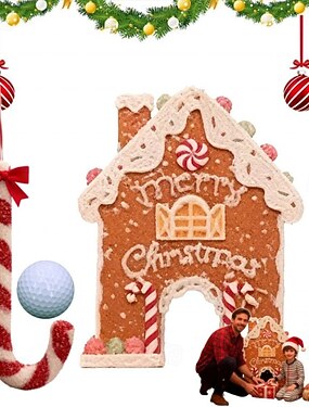 Gingerbread House Golf Kit, Gingerbread Golf Game Set, Christmas Golf Game, Indoor Golf Decor Halloween Ginger Bread House Kit with Candy Cane Club & Balls, Portable Family Game for Kids & Adults