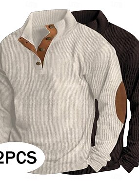 Муж. Вельветовая рубашка Футболка Рубашка с длинным рукавом Длинный рукав Молния Осень Зима Контрастных цветов Повседневные Текстурированный На каждый день