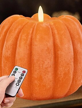 Autumn Pumpkin LED Electronic Flashing Flameless Candle Light Halloween Thanksgiving Indoor Party Desktop Decoration Light Pendant Light 8 Function Timer Remote Control AAA Battery Box Prop 5.3 * 4.9"