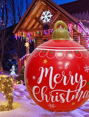 60cm Outdoor Christmas Inflatable Ball with Light, PVC Holiday Huge Large Christmas Ornaments Outdoor for Tree & Yard Decoration