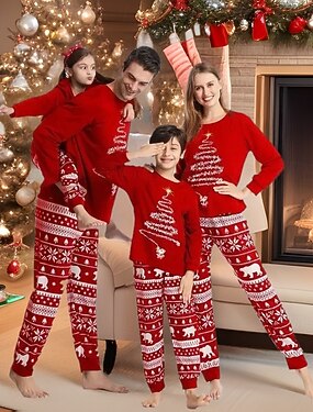 Christmas Trees Family Christmas Pajamas Nightwear Family Men's Women's Boys' Girls' Family Matching Outfits Sweet Adults Kid's Christmas New Year Christmas Eve Christmas Home Wear Top Pants