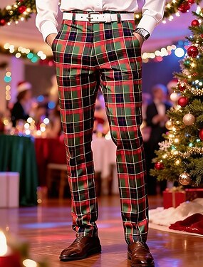 Men's Christmas Pants Trousers Dress Pants Chinos Pocket Buttons Plaid Comfort Formal Party Work Fashion Classic Style Dark Red Red Micro-elastic