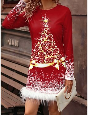 Christmas Women's Mini Dress Sheath Dress Elegant Vacation Cute Holiday Regular Fit Christmas Tree Snowflake Long Sleeve Crew Neck Blue Red Purple Fall Winter