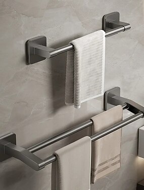 Bathroom Double Pole Towel Rod Without Punching Markless Patch Towel Rack Bathroom Wall-mounted Gun Grey Towel Rack
