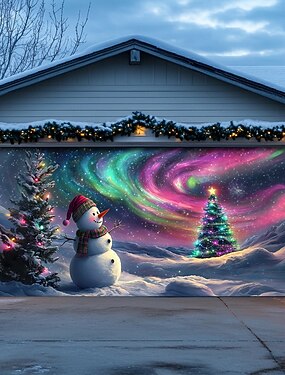 Christmas Door Decorations Garage Door Cover Snowman Xmas Tree Outdoor Banner Large Christmas Backdrop for Holiday Home Wall Decorations Gifts Lights