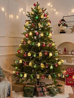 6M-40Leds Christmas luminous light string, Christmas ball, five pointed star gift box design, indoor porch, balcony, staircase party, festive atmosphere decoration light, USB power supply, AAA battery
