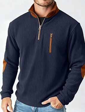 Men's Corduroy Shirt Tee Top Long Sleeve Shirt Long Sleeve Zip Fall Winter Fall & Winter Color Block Daily Textured Casual Zip Up Oversized Loose Outdoor Street Causal Light Blue Black Dark Blue Top