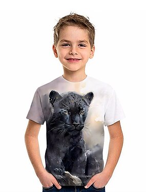 Kids Boys T shirt Tee Graphic Animal Leopard Short Sleeve Crewneck Children Top Outdoor 3D Print Sports Fashion Cool Summer White 2-13 Years