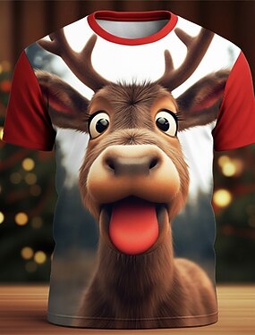 Christmas Men's Elk T Shirt Short Sleeve T shirt 3D Print Crew Neck Shirt Daily Designer Artistic Vacation Party Street White Red Red 2 All Seasons Clothing Apparel S M L XL XXL XXXL