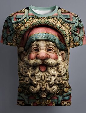 Christmas Men's Santa Claus T Shirt Short Sleeve T shirt 3D Print Crew Neck Shirt Daily Designer Artistic Vacation Party Street Pink Red Green All Seasons Clothing Apparel S M L XL XXL XXXL