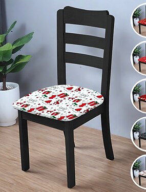 Christmas Decoration Chair Seat Cover, Holiday Slipcover for Home, Office, or Dining Chair For Xmas