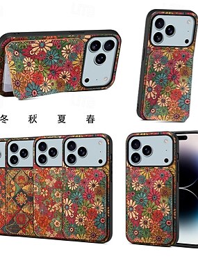 Phone Case For iPhone 17 Pro Max 17 Air 16 15 14 Pro Max Plus 13 Pro Max Back Cover with Stand Holder Shockproof Flower Floral PU Leather