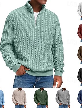 Men's Jacquard Sweatshirt Pullover Quarter Zip Sweatshirt Apricot Wine Red Black White Light Green Standing Collar Plain Zip Up Textured Sports & Outdoor Casual Daily Streetwear Cool Sportswear