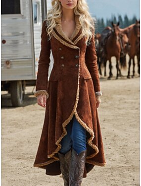 Women's Winter Coat Winter Jacket Comfortable Breathable Buttons Casual Plain Vacation Street Casual Daily Wear Single Breasted Long Lapel Regular Fit Long Sleeve Outerwear Coffee Spring Fall