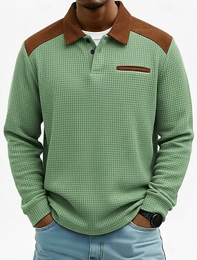 Men's Waffle Polo Shirts Polo Shirts Casual Sports Lapel Long Sleeve Fashion Basic Color Block Patchwork Color Block Fall Winter Spring & Fall Regular Fit Light Blue Navy Blue Purple Green Gray