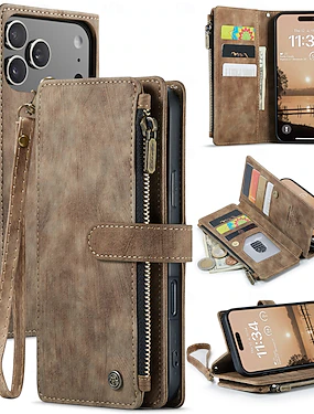 Phone Case For iPhone 17 Pro Max 17 Air 16 15 14 Pro Max Plus 13 12 11 Pro Max Mini Wallet Case with Stand Holder Zipper Full Body Protective Retro TPU PU Leather