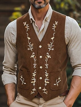 Men's Corduroy Vest Waistcoat Formal Wedding Vacation Casual Fashion Classic Spring Fall Pocket Buttons Comfortable Floral Single Breasted V Neck Lapel Regular Fit Black Navy Blue Brown Vest