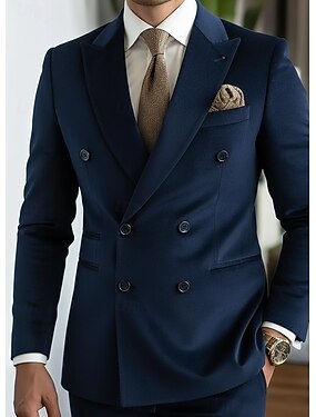 Men's Wedding Party Business Suits Peaked Lapel Black Brown Formal Solid Colored Tailored Fit 2 Piece Double Breasted Six-buttons