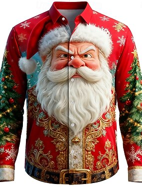 Christmas Men's Santa Claus Christmas Tree Human face Shirt Button Up Shirt Long Sleeve Funny Outdoor Holiday Spring Fall Turndown 3D Print Collared Shirts Blue Red 1 Red