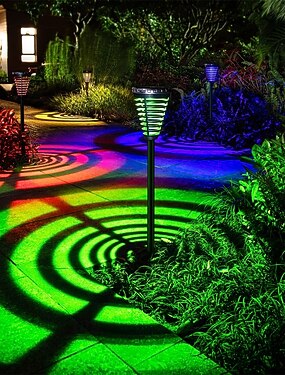 Outdoor Solar IP65 Waterproof High Brightness Hollow Projection Stake Light, Garden Yard Pathway Lawn Decor, 2200mAh Battery, RGB + Warm White/RGB + White Light, Decorative Landscape Lighting