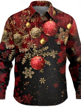 Christmas Men's Snowflake Christmas Light Shirt Button Up Shirt Long Sleeve Funny Outdoor Holiday Spring Fall Turndown 3D Print Collared Shirts Black-Red