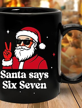 Santa Claus 67 Meme Mug Christmas Funny Gift Coffee Mug, Holiday Humor Cup for Men Women, Festive Gag Present for Friends & Family
