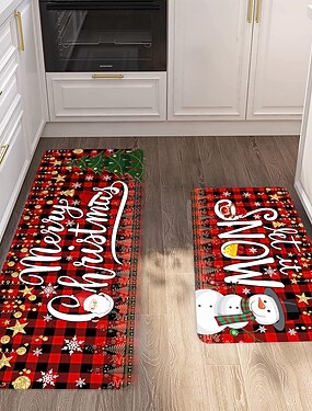 Christmas Floor Mat 2-Piece Set For Hallway Kitchen, Absorbent, Dirt-Resistant And Soft Non-Slip Machine Washable Rug Entrance and Door Rug, Easy-to-Clean Kitchen Mats