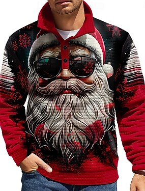 Christmas Men's Santa Claus Waffle Sweatshirt Daily Classic Casual Stand Collar Outdoor Home Work Gift Blue Red Green Buttons Fall Winter Designer S M L XL XXL XXXL