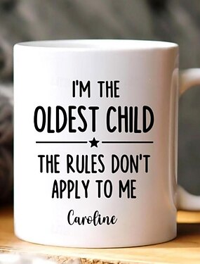 Personalized Gift Mug for Middle Child Custom Name Ceramic Coffee Mug Who Makes The Rules 11/15 oz White Birthday Christmas Family Humor Coffee Mugs Cups