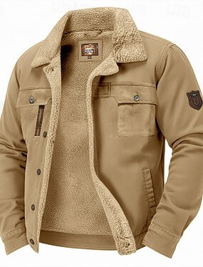 Men's Winter Coat Fleece Jacket Warm Thicken Outdoor Daily Wear Solid Color Outerwear Clothing Apparel Blue Green khaki