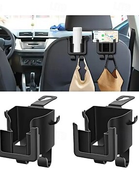 2pcs Multifunctional Car Cup Holder, Car Seat Back Storage Rack, Car Phone Holder with Headrest Hooks, Hanging Storage Organizer Accessories, Universal Car Back Seat Hook Can Hold Water Bottles