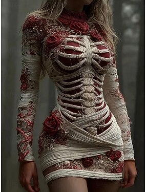Women's Mini Dress Bodycon T Shirt Dress Tee Dress Bodycon Dress Vacation Casual Party Regular Fit Graphic Skull Long Sleeve Crew Neck White Spring Fall Winter