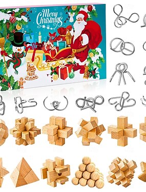 Brain Teaser Advent Calendar 2025 for Kids - 24 Days of Christmas Countdown Calendar With 3D Metal and Wooden Puzzle Toys-Mind,IQ,Logic Test and Handheld Disentanglement Games For Boys Girls Teens Adu