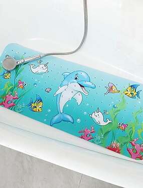 Cartoon Baby Bath Mat, Kids Bathtub Mat Non Slip for Toddler Bath Shower Anti Slip, 40In X 16In with Drain Holes and Suction Cups Machine Washable, Turtles