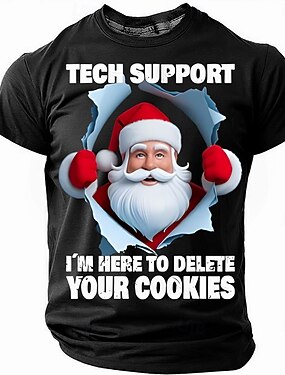 Christmas T-shirt, Tech Support I'm Here to Delete Your Cookies Shirt, Funny Computer Geek Christmas Tee, Gingerbread and Cookie Pun Graphic Apparel for Men, Sizes S M L XL XXL XXXL