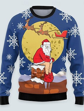 Ugly Christmas Sweater Men's Funny Sweaters Santa Claus Pullover Jumper Knitting Thermal Party Evening New Years Eve Long Sleeve Crewneck Fall Winter Blue S M L