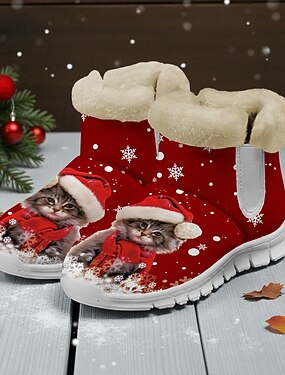 Women's Christmas Warm Fur-Lined Boots with Cute Santa Cat Print – Cozy Winter Style, Non-Slip Lightweight Sole, Perfect for Holiday Parties, Outdoor Walks, Casual Wear and Christmas Gift Giving