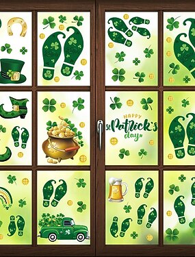 9 Sheets St. Patrick's Day Window Clings, Shamrock Leprechaun Shoe Footprints Gold Coin Static Cling Stickers, Irish Party Decor Glass Decals for Home Store