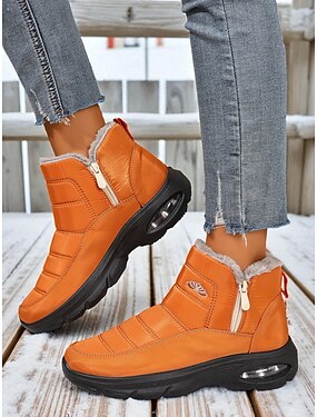 Women's Orange Waterproof Winter Snow Boots – Warm Fur-Lined Ankle Boots for Outdoor, Hiking and Cold Weather
