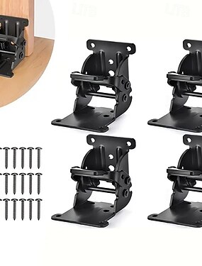 4 Pack Heavy-Duty Folding Table Leg Brackets with Self-Locking Hinges, Foldable Iron Brackets for Table Chair Bed Legs, Lock Extension Support Hinges with Screws
