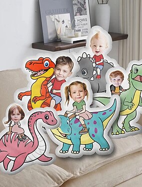 Personalized Photo Face Pillow,Customized Kids Riding Dinosaur Pillows, Birthday Boy Gifts, Funny Ugly Pillow, Custom Shaped Pillow, Stuffed Dinosaur