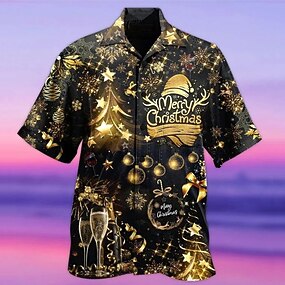 Christmas Shirts Men's Shirt Tree Letter Graphic Prints Turndown Gold 3D Print Christmas Street Short Sleeve Button-Down Print Clothing Apparel Fashion Designer Casual