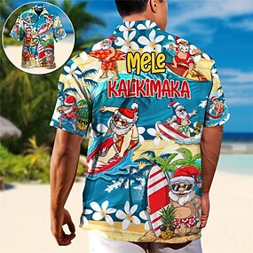 Christmas Men's Funny Christmas Printed Shirts Floral Santa Claus Hawaiian Casual Outdoor Street Fall Turndown Short Sleeve Blue S M L Shirt