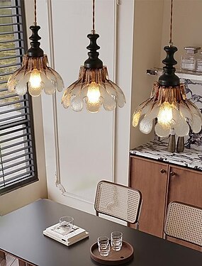 Glass Pendant Light Kitchen Island Lighting Fixture, Purple Flower Glass Shade Style Drop Ceiling Lamp, Dining Room Bedroom Bar Rustic E27 Hanging Chandelier