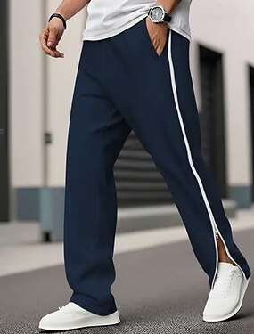 Men's Sweatpants Tear Away Pants Track Pants Straight Leg Sweatpants Zipper Elastic Waist Solid Color Comfort Breathable Full Length Casual Daily Holiday Vacation Sports Black Navy Blue Micro-elastic